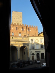 我们到达锡耶纳的时候已经是黄昏了,在火车站坐公车到了市中心边上的Piazza Gramsci,沿着人最多的一条路往里走,看到许多衣着体面的当地人朝我们的反方向走,就知道我们没走错,他们必定是从市中心的工作下班,要回市郊的家。沿着大街走下去,很容易就找到了Piazza Indipendenza(独立广场),但是我们在周围的小巷里找了半天也没找到Hotel La Perla,最后才发现它不就在广场边吗?后来专门拍了一张门口的照片,让以后再去的朋友更容易找到。 上了楼,进了门,里面大概有七八间房间,门口前台似乎是在当地读书的大学生。整个旅馆感觉很安静。旅馆房间很小(当然价格也很便宜),窗外就是Piazza Indipendenza。早上起来看到明媚的阳光照亮了前面建筑的明黄色,果真就是我最爱的意大利了!黄昏的时候,对面的建筑更是像镀了金般漂亮。 Hotel La Perla的位置很方便,离Il Campo和大教堂都非常近。我们离开锡耶纳的时候拖着箱子从旅馆走到长途车站大概用了15分钟左右。还要感谢前台向我们推荐的饭店Tratorria Papei ,成为我们锡耶纳之行的一个亮点,又便宜又美味环境又好!