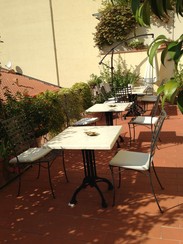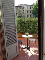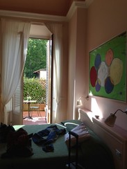 去年来佛罗伦萨住在繁华地区的宫殿里,今年选了家城边儿的酒店。酒店在一幢公寓楼里的二楼,共7、8个房间,老板娘非常亲切,指挥我们把车停到了旁边的停车场。对公寓楼下没有提供停车位这件事非常抱歉,老板娘主动分担了我们一部分的停车费。老板娘一家三口也住在公寓里,酒店接待客人,清理房间,准备早餐等工作,都是由他们两个人来打理。老板娘的老公很有意思,看穿着打扮很像画画或写诗的。他说他很喜欢上海,我俩问他去过上海吗?他说没去过,因为他不敢坐飞机和火车,所以他哪里也去不了。外国有各种各样的怪人。他俩的儿子7、8岁的样子,经常在客厅里玩游戏机,很调皮但非常有礼貌。酒店是一间大公寓改造的。一进门两边是厨房和大客厅。房间非常干净温馨,开门出去是个大露台。