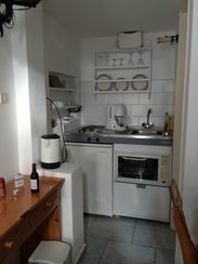 严格意义上来说它就是一个家庭式的旅馆,旅馆大概分为三层, 它只有为数不多的几个配备有厨房和炊具的小套间都在上面两层,房间不大也不豪华,属于那种麻雀虽小五脏俱全那种。每个房间的外面都有独立的一个小露台, 配上两把椅子跟一张桌子和一把阳伞,酒店的游泳池也保持得很干净, 几乎没有人用,6月底的价格106欧/晚, 在圣岛来说算是很经济的