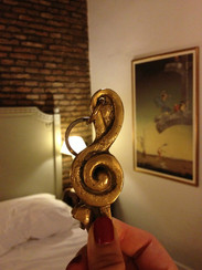 在圣十字街上,地理位置非常好,离大教堂5分钟。在塞维利亚的几天里,我们还惊喜的发现,它离LP推荐的餐厅、推荐观赏地道flamenco的地方都很近,因为flamenco 结束的时候是晚上10点了,所以虽然是穿非常小的巷子回酒店,但因为离得很近,我们也就放心大胆了。酒店都是音乐元素,房间以音乐家命名,房间钥匙链也是音符状,酒店的大堂里摆放着各式乐器,每天下午还会有悠扬的钢琴演奏。唯一不好的地方是空间真的很狭窄,而且不隔音。
