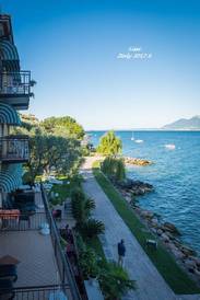 当初订酒店的时候,看到酒店周围环境的图片很惊艳,而且就在湖边,想象着在这种环境下吃早饭该是多么惬意。其实旅馆的内部环境实在不怎样,房间很小,而且显得比较陈旧。我们订的是双人房,老板娘问我们是不是要每人加2欧换成湖景房,我们说好。