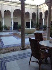 在一个风雨之夜下榻一个古堡酒店,真是太有感觉了!房间有些旧,不过这和古堡风格蛮配的,室内异常温暖,推窗看外面,夜幕下一片广阔的平原,我们两个小伙伴都惊呆了!我在窗前久久不忍离去,另一个人在厕所也惊呼起来,说是可看到最美风景的厕所! 等我们稍稍平静下来,已经八点多了,于是dress up到下面餐厅用餐。Fodors对帕拉多餐厅评价很高,建议一定要去尝试,但也有评论说餐厅贵且不好吃;我们决定自己体会一下。餐厅不愧是古堡里面的餐厅,又高又宽阔,也比较古旧;两个大叔殷勤地跑前跑后。我们选了40欧的两人套餐,觉得性价比真的很好! 这个餐厅据说是被评为帕拉多的最佳景观餐厅。其实除了风景好,早餐也颇有特色,板牙国特色的水果酒都有得提供,甜点也很棒,除了常见的食物,还有平时不太见到过的香肠和血肠。还有几样当地小吃,怎么说呢,和我小时候在西安吃过的一些小吃糕点,油糕拉,蜜三刀拉什么的,味道一模一样. 也许就是因为当初行走于东方长安和西方塞维利亚的伊斯兰人,才使得今天西安街头的普通食品,也能跟板牙国帕拉多的早餐扯上千丝万缕的联系吧。 离开餐厅,我们把这个城堡上上下下逛了一遍,然后走出城堡大门,沿着山路走到下面的卡拉莫小镇。这个小村镇宁静而闲适,除了在广场上,几乎看不到什么人。教堂的钟声时不时悠然的响起,恍惚让人有身处古代的感觉。 不觉已经到了中午,我们恋恋不舍退了房,准备去下个城市-科尔多瓦。退房时帕拉多帮我解决了一个大问题-我身带一张五百欧大钞,几天都花不出去,别地不是没得找就是不肯收,活像电影百万英镑里那张吓人大钞一样。酒店拿了钱,点钞机上过了一把就收了,找钱了,真是阿弥托佛,解决了我现金流的大问题。