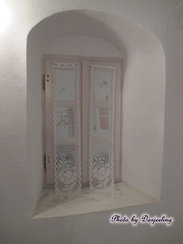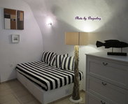 位置:★★★★★★ 价格:★★★★ 设施:★★★★ 服务:★★★★ 有厨房、起居室、浴室、卧室,在断崖中段,外有露台,面朝大海,岛上的猫猫会自己来求抚摸求疼爱,简直是神仙般的日子啊……区隔起居室和卧室的小窗户,蕾丝的小窗帘太美貌了~~我最爱的海军风贵妃榻,好舒服,躺在上面就不想动啦~~