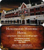 洛杉矶,Hollywood Historic Hotel(Hotels预订),很多穷游儿推荐的宾馆,一栋很有历史感的宾馆,墙上贴了很多电影明星的剧照,沿马路(北面)的一边噪音很大,为此酒店给换到朝南一面。1225元(人民币)/2天(含税),还是比较便宜的,距离星光大道3-4公里路。总台一位胖胖的接待员很讨人喜欢的,我们从星光大道回来时,还特意玩耍了几把扑克戏法。