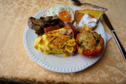 酒店依着湖边的山体而建,楼层的分布也是与众不同,前台的小伙子非常耐心而缓慢的带着浓重德语口音跟我们介绍了一遍又一遍如何乘坐电梯“下到4楼”。房间的布局是老式的常规布局,但做工以及洁具非常好,房间里也是很干净。门口过道的墙壁,还专门保留了一块岩壁,很有意思。收拾好行李之后,我们去到露天酒吧,享受酒店赠送的迎客香槟。酒店的早晨非常丰富,冷热品种很多。餐厅的景观也是无敌湖景,太棒了。