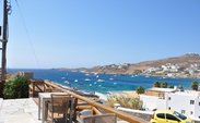 该酒店为四星级,安排司机接送,酒店很漂亮,景色也很美,在房间的阳台上,可以看到Ornos和Agios两个海滩,离着天堂和超天堂很近,走几分钟就可以到Ornos海滩。但是,如果有的选择我绝对不再选择这个区域的酒店。价位不低,约190欧/天;交通不方便,离小镇需要开车约15分钟,需租车或者坐公汽。公汽到凌晨2点结束。虽然我们租了四轮摩托,但是因为天气太冷,来回跑总是不方便。 住在小镇或者小镇附近的话,就可以步行随时到商业区或者景点区漫步,可以随便坐在一个大石头上观看每一处不经意惊叹的景色,可以晚上随时去不夜城的酒吧泡着。。。。可是,我们都没有。主要是天气太冷,风太大的原因。米岛,也被称为the city of wind。