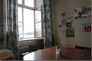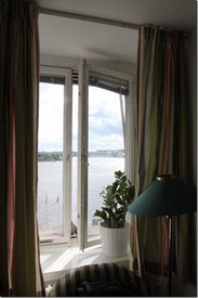 在浩如烟海的酒店名单里找到了这一间具备了诸多优势的青年旅舍,最棒的是它的位置,就在斯德哥尔摩老城中心,窗外是没有任何遮拦的无敌湖景,距离皇宫只有三百米,那不就跟住在长安街上一样吗。而且还包早餐、有厨房、有洗衣设备。除了这些,价格也能忍受,720人民币每晚,要知道附近的其它酒店只要是有独立卫生间的,都得一千五往上啊,还不带厨房。房间里有一张双人床,两个茶几和一张多屉柜,非常简单。