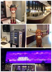 Yotel New York,在官网预订。连住3晚当时有个85折的优惠。寸土寸金的纽约,便宜点是点。 这是家很现代的酒店,全部自助,从check in 到check out,包括行李寄存。看这任劳任怨的机器大哥。全自助好是省了小费,不好的就是规定入住下午3点没余地,所以存了行李,跑到外面凑合了顿麦当劳。 酒店很别致,还有可爱的麋鹿。每层都有茶水间,虽然不包含早餐,但每日早晨都会供应咖啡和麦芬。