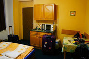 Address: Biskupsky dv?r 3, Prague 01, Praha 1, 11000,Czech (地铁B/C两条线,以及有轨电车8/24/3/26等Florenc站附近,公车Tesnov或Bila Labut站附近) Tel: +420221779343 Email: aparthotel@davids.cz 旅馆的位置还算可以,离公车站较近,走去地铁Florenc站则需要约8-10分钟。不过在这里乘坐地铁无需换乘就能直接到达火车站,还比较方便。房间内设施相当齐全,带有一个室内小厨房(有微波炉和电水壶,还有餐具和各种清洗用具)。卫生间和浴室是公用的,不过也就是两个房间公用,而且就在门口,所以基本上和私用差别也不大。房费含早餐,接待处和早餐室那里有wifi,房间里无信号。 (欢迎喜爱旅游的朋友来坐坐,我的新浪微博@魏无心)