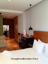 从Monastiraki地铁站上来就到,离卫城也很近,去游览去机场交通都非常方便。前台小伙很热情地帮我们介绍游览路线。酒店电梯还是非常的小,两个人加一个箱子就没法转身了。房间干练宽敞,可惜窗外没什么风景。因为离广场比较近,晚上会听到打鼓的声音。六楼的餐厅有大大的落地玻璃,卫城的全貌一览无余。