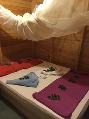 半食宿CAMP,管早餐和晚餐,都是自助,都很好吃!因为计划要去走利西亚之路,所以在Kabak订了一晚住宿,虽然后来没完全走成(死海的计划全被Kerim Otel的不靠谱行为打乱了哼唧),但还是去这家住了一晚,看了Kabak Beach的清晨,走了小小一段利西亚之路感觉了下。 山间木屋,条件也就那样了,对于喜欢露营、徒步的朋友来说很值得一住,蚊子很多要注意(我都快被咬死了55555),蜜蜂也经常围着人飞,尽量少吃蜂蜜呵呵。还有就是不能带行李箱,因为全是上下坡,我们是把行李寄存在Hector的,只背了一个包,装当晚要用的东西。老板很热情,不过据说这里很多嬉皮士,我们虽然没看见人,但看见很多他们留下的烟卷头 清晨很美,露台上看Kabak湾也很美,我觉得是值得的。从死海到这里的小巴差不多一小时一趟,在山路上飚得那叫一个快,超爽!