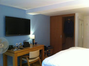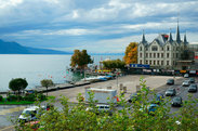 这家酒店的前台很有意思,是一家卖三明治的小店,周六的市集就在这家酒店门口,非常热闹,check in只能在下午3点以后,前台的卖三明治美女会带你去旁边小巷的公寓大门,我们的房间在3楼,但是没有电梯,要自己搬行李。房间非常宽敞,可以看到日内瓦湖,不过不是正面,出门左拐就是沿日内瓦湖的步行道。酒店距离火车站大概要走10分钟,路程比较平缓。
