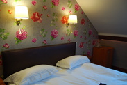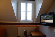 酒店交通优势是离RER B线的Luxemburg以及B、C线交叉的ST-Michel Notre-Dame约5分钟走路程,Metro则是10号线的ODEON及Cluny La Sorbonne站,不过都要走一段路。附近餐厅很多,离索邦大学近,所以都是学生,餐馆价位较便宜,路上很多二手书店。景点克洛尼博物馆就在附近,我们都很喜欢这个博物馆。 一到酒店,就被柜台上的猫咪Sputnik给吸引。随意地让人摸摸都不会生气,对刚来的客人很好奇地样子东凑凑西闻闻,让客人感到很荣幸,但是过两三天就对我们没什么兴趣不太招待了,非常地现实啊!刚入住那天,放好行李准备要出去晃晃,电梯上来门打开居然是猫咪Sputnik!好像上来迎接我们一样,然后猫咪又跟我们一起搭电梯下楼啰!真是太可爱了!!亲切的柜台小姐说Sputnik已经16岁了!!!对牠有兴趣的人可得赶快去巴黎玩啰! 在check in的过程中,柜台小姐还打电话吧啦啦不知道说了些什么,电话结束后就对我们说「You are very lucky」。原来我们订的一般房型都满了,所以将我们升等到Superior房型。这房间就比前一间大多了,至少摆了行李还能走来走去的,衣柜看起来有点历史,人还可以站到里面去耶!不过这间房间乍看虽是double bed房型,但实际上躺上去就发现也是双并single bed,难道巴黎没有真的double bed吗?!(可能五星级饭店就有了吧!)位在顶楼,我们每天就是开窗户检查今日天气,这间的卫浴用品更简单,旁边的毛巾架可以通电加热, 我们都拿来烘衣服) 因为享受到被升等的优惠,我们接下来几天都愿意每人加价,在hotel吃早餐。不过早餐内容很阳春,约4-5种面包以及两种火腿切片、水煮蛋以及水果、果汁、优格。这家hotel除了猫咪吸睛外,柜台小姐也是人长得漂亮(3个中的1个)、笑容又亲切,服务也很好。