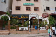 夜宿Fes的Pension Hotel Dalila et Rania,两人间和三人间都是每人10欧。晚上10点左右抵达Fes时,因为功课做得不细,误信了booking上给出的旅馆坐标,以为旅馆就在Fes的CTM大巴站旁。因此当晚下车后没有搭理车站外拉客的司机,直接向事先查好的位置走,结果走进了一个当地新城的网球青年俱乐部。多亏了这个俱乐部看门大爷的热情帮助,才联系上了旅馆,并且说清楚了我们所在的位置,由旅馆派车来把我们接到了老城边上的实际地点。这个旅馆距离蓝门较远,靠近皮革染坊。 我们所住的旅馆Hotel Dalila的老板和伙计都比较热情,其中的一位大叔会带着我们去看皮革染坊,找人给我们讲解,大概也是因为我们在里面参观后买了两双皮拖鞋,所以并没有另外花参观费。