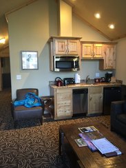 因为没有订到黄石里面的住宿,经过一番比较,抢到了最后一间西黄石埃克斯普劳勒木屋酒店……(6人住)。木屋在专业旅游评论网站上排名第二,事实也证明货真价实。小木屋离公园的西门口3分钟路程,酒店每晚都会在木屋门口点上烧烤炉,供大家BBQ