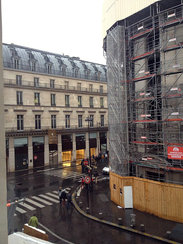 RER B -chatelet les halles站换乘M1-louvre rivoli站下车。出站后找酒店花了一点功夫。拖着行李,抱着孩子在雨中问路,初次体会了巴黎人民的热情,welcome to Paris是我们收到的第一句问候。酒店房间是小,是真的小,无力吐槽,