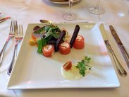 我们的车从戴高乐机场开出20多分钟后,驶出高速路,开始进入一个小镇,对了,尚蒂伊到了。夕照下的小镇尤为美丽,朴素但高贵。距离巴黎不过40公里左右, 却已经是两个世界。还是那句用俗了的话,这里岁月静好。 慢慢驶入一片森林,视觉上已经让精神为之一振。没成想车渐渐放慢了速度,绕行进一个敞开的铁门,慢慢引入眼帘的是一座原汁原味的古堡。这竟是我们第一晚的下榻之处,真是惊喜万分。下车后,整个森林弥漫的神奇气息将疲累一扫而净。原来,这个古堡酒店由特为拉吉尼城堡(chateau de montvillagenne)改建,正是坐落于环境优美的尚蒂伊森林公园中心。古堡酒店内设明亮温馨,标准间的客房并非奢华,而是走田园style。姑娘们见了,一定心水。后来听说,这间酒店曾拍摄过韩剧:巴黎恋人,要知道思米答们是最会选景的,可想这个地方有多迷人了。 这家酒店的餐厅叫做Le vilargene,据说获奖无数。于是在其中的取名蓬芭杜夫人的包厢,用了晚餐。虽然用餐时,时差带来的睡意阵阵袭来,却没有麻痹味蕾对于美食的敏感度。餐厅里所有的陈设、实木的窗框和地板、落地的碎花窗帘都让这一餐变得尤为特别。窗外远处则是望不尽的树林,环抱在此等美景之中,酒不醉人人自醉。