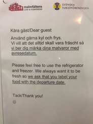 推荐指数五颗星***** 交通便利程度**** 舒适程度**** 由于是在这里看到极光的,所以大爱这里。这个营地就在著名的Camp Ripan后面,很近就是贴着点。晚上可以走到Camp Ripan 里面看极光。住所厨房里面的吃的都是住户购买的,你可以免费吃,但是吃完需要及时购买补入。超市离营地的距离步行15分钟。 我们抵达营地比较晚,所以工作人员在 Reception门口贴了DOP 告知我怎么打开信箱取钥匙。房间的一楼是公用厨房加客厅和三间套房,二楼也是三间套房。房间内的设施比较几本不是豪华的那种。楼下厨房内的餐具和橱具都是一应具全。如果你打开冰箱里面装了很多食品,后来知道东西是住客自己买的,虽然没有标注名字。我们当时没有仔细看,就把冰箱里面的东西吃了点,Ripan的大餐远远抛在脑后。但是后面的问题就来了……如过你吃了冰箱里面的时候,你需要在之后补上并标注上日期。
