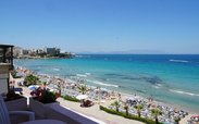 这是一家三层的家庭旅馆,临着海边的街,老板带我们看了两间房,一间是三人的套间,房间很大,阳台比较小,另一间是双床间,阳台更大且正对着大海,一见这阳台我们就决定了。