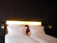 选择这家酒店是因为Philippe Starck是这间旅馆的设计师!因着这个源由,因此即便地处巴黎较偏远的20 区,我们还是拉着行李,换了三段地铁,不辞千里远的入住了。 酒店位在Bagnolet街上,远离了巴黎市中心的拥挤与都会感,这里是个纯住宅的小区,街巷还算宽敞,住民三五走过,一派清幽,寻着地址,来到109号前,是一幢米白色的高楼型建筑,雅致的外观与一般公寓大楼并无二致,门口除了简单的 109 MAMA SHELTER三个大字外,什么也没有,没有旅店的标志或字样。唯一透露点蛛丝马迹之处,是在入口电铃处下方内部,摆了一个极不显眼、字体极小的价目表。以一间设计师款的精品旅馆论,算得上是物美价廉。 后来一经询问才知道,这间旅馆其实是由废弃的汽车修理厂改建而成,取名MAMA SHELTER正是希望营造一种像庇护所般受到保护与照料的气氛,因此外观就像现代巴黎当地的寻常百姓家,给人一种回家的安心感。 而一踏进旅馆内,则又是惊喜处处的开始了。推门入内,第一件欢迎旅人的小物,就是一脚踩上的踩脚毯,三个大字MAMA SAYS HELLO,让人觉得宾至如归,也为这小小的用心与创意,觉得温暖。接待区的设计则是另一特点,深度约一米至一米半的接待桌面,高度刚刚好,但却拉近了柜前旅人与接待服务生之间的距离。让来自远方的旅人能像倚在自家桌柜前,感到话家常般的自在与放松。 另一项特点在于墙上的涂鸦,以及遍布天花板的涂鸦艺术。整间旅馆的壁面及天花板处,几乎都是深色底色,搭配涂鸦艺术师的杰作,设计感十足,存在感十足,但因位置处视觉高角度,因此一点儿也不杂乱,反而令人留下多元自由的下意识印象。 而这样的涂鸦装饰还一直延续到每一间住房的门口,踩地毯上酷似儿时玩的跳格子涂鸦设计,毫不迟疑的让人一下子就卸下了心防,也彷佛卸下了一身的疲累,因为你知道,推开房门,就是舒适,就像回家。 房间里的摆设,当然都是Philippe Starck的设计款,举凡桌上使用的Miss K台灯,还有Marie Chair的变形款,让人一入室内就感受到Starck式的现代极简风格,清爽,透亮,却不冰冷。 而MAMA SHELTER的另一大特点,就是处处是Apple,不是真的苹果,而是苹果商品iMAc,举凡房间里的电视视听屏幕,或是接待区的计算机屏幕,或是旅馆讯息的告示屏幕,一率使用iMac,利落,精美,却能令人感到熟悉的安心。 房间里的重头戏在于,极舒适柔软的床铺,以及床两边的公仔面具小灯。平凡无奇的床边小灯,罩上了蝙蝠侠的面罩,只让锐利的灯光由面罩上的两只眼睛处透出,营造出立体晕光却不失明亮的巧思与效果,彷佛蝙蝠侠炯炯有神的在床边捍卫你良好的睡眠一般,趣味性十足。 我们在这里一连住了两晚,夜晚时间就回到房间享受自在的休息,白天时间,我们偶尔会下楼光顾旅馆内附设的MAMA PIZZERIA,虽然只卖简单的披萨及色拉等轻食饮品,但旅行途中能穿着拖鞋下楼来随意吃个东西,已让我们深刻感受到居家般的舒适与自由。 MAMA SHELTER除了轻食的PIZZARIA,也有提供正式晚餐及夜间酒类的Restaurant Le Mama Shelter,不但相当受到住宿房客欢迎,连住在附近的上班族及住民也视其为聚餐场所,我们住房时恰逢周末夜,晚上还有乐团表演,听说演出到凌晨两点,但可能是隔音措施不错,我们不到午夜就入睡,竟丝毫没有感受到楼下的震耳夜乐。 偶尔尝试一下像MAMA SHELTER这般不按牌理出牌的类精品旅馆,为自己的旅程灌注多一点惊喜与能量,更重要的是,充满乐趣啊!