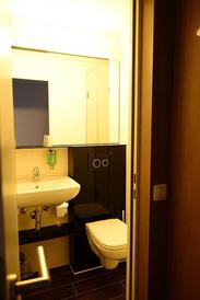 酒店位于慕尼黑的Riem区,下了高速,第一个路口左拐开几百米就到了。只是,拐进了Riemer大街之后,那一路,黄叶飘飞,风景如画。这所酒店,就座落在一个幽静的街区,旁边,是一座小小的教堂。房间在三楼,没有电梯。开门,居然有我心心念念的老虎窗!小小的房间,布置得现代又可爱。浴室的设施蛮高级,居然用了杜拉维特的座便器。更贴心的是,酒店在枕头上各放了一小包橡皮糖。礼物虽然很小,可是,能感受到酒店对客人的用心。 位置:★★★★在靠机场的方向。离慕尼黑郊区铁路S2线Riem站600米左右,坐6站可到玛丽安广场,不需要换乘。 房间:★★★★很可爱的房间,窗明几净,设计时尚,浴室的配置级别很高, 设施:★★★★★ 有吹风机、毛巾、洗手液、沐浴液和洗发水,酒店自有停车场,可以免费停车。有免费WIFI。 早餐:★★★★早餐是自助的,品种比较丰富。 服务:★★★★我被橡皮糖、送的两瓶水收买了,而且,前台MM也挺热情和蔼。 性价比:★★★★★69欧并且可以免费停车,交通也方便,在慕尼黑应该算不错的价格了吧!