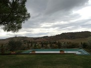 这个农庄TOMTOM也导航不到,只能和老板娘约在某个地方碰头,然后她开车在前,我们跟在后面;到农庄的路是很老的乡村小路,连TOMTOM都没有覆盖到。而这正是我们希望的,能够有机会到托斯卡纳的农家体验一把。很快就开到了,下了车,我们三个恨不得能欢呼起来:太喜欢了!看图不解释。 女主人Maura和老公两个人经营着这个农庄,Maura能讲英语,人也很能干,老公只是给她当副手。之前看酒店介绍后我们很渴望能够晚上在她这里吃一顿她们自己烧的,取材于农庄本身的晚餐,可惜她很抱歉地告诉我们最近太忙了,没时间准备,推荐了我们一家位于蒙特尔奇诺的餐厅,号称T骨牛排特别棒。 转天Maura早就准备好了早餐, 满满地摆了一桌;夫妻两个和我们一起吃.Maura家的面包是这一路吃的最好吃的面包,刚刚烤出来,又香又软. 我们还在餐桌上进行了中意两国的民间交流 . 他们问我们来自哪个城市,做什么的, 据他俩说这里中国人来的很少,之前只来过一次香港人.而他们也从没有去过中国. 我们大赞意大利及托斯卡纳的美丽, 但他们说这还不是最好的季节:五六月份时绿草青青,遍地鲜花;九十月份葡萄成熟,遍地金黄;说得我决定将来的某一天一定要再来一次.同时我们也建议他们去看看风格完全两样的中国 . PS: 他们家好几只喵星人很有趣, 那只名叫施皮茨的黑猫很粘人, 我们起床时就跟到卧室,还爬上床,吃饭时又跟到餐厅. 等我们吃完饭在院子里遛弯时他老兄又来了. 还纠集了几只黄喵.