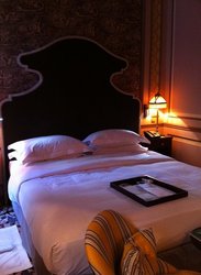 酒店就位于波尔多大剧院对面,门口就是大剧院广场,往左是梅花广场,往前是水镜广场,往右是圣凯瑟琳步行街,出行非常方便。房间采用了暖色系的暗红色,加上昏黄的灯光,整体显得比较暗