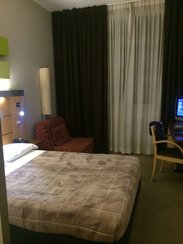 米兰的住宿是我在Priceline Bid的。(Priceline里有三类价格,第一类是公开售价,与其他订房网站没有区别;第二类是特价房,你选择区域和相关条件下可以看到特价房,但不会告知你具体是哪一家酒店;第三类也就是最有机会拿到低价房的一类,就是特定区域和条件,自己出价。网上有攻略教如何推断到是具体哪家酒店,以及如何出价bid中的机会最大。) 我住的idea hotel milano bicocca,以54欧中标,含税价格一共70欧。在check-in的时候看见旁边的人付的是90多欧。其实这酒店挺舒服的,就是离火车站比较远,我们当晚从火车站走过去,导航导给我们一条特别曲折特别黑暗的小路,我们拖着行李走了快半小时。当时还有严重的时差,真的很要命。