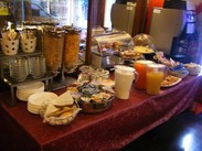 这个酒店让我难受到不愿意拿相机去拍它,却生生要去了我110欧一天。首先它不怎么好找,我们拖了行李沿着运河来回走了3圈也没发现它,问了好多附近开店的人也不知道。隐蔽在一个小巷子里,不仔细看很容易错过。没有电梯。好在楼层也不高,我们提着行李走上去,打开门,眼前的一切好似回到了50年前,不是复古,而是陈旧,以及一股腐朽的味道。房间设施很简单,灯,床,柜子,没有电视。卫生间的水会留到房间里。房费包含了早餐。大概是房间太老旧,以至于我们看到早餐的时候非常的惊喜,觉得很丰盛。光说它不好的了,这个酒店最大的优点,也是我选它的理由就是地理位置相当好。离火车站走路只要几分钟,到水上巴士车站也非常的近。
