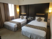 酒店的服务生服务甚佳,一会儿就办好了入住手续。上到房间一看就喜欢上了这间房间,真是又舒适又干净又宽阔,棒极了!12岁以下的小孩不加床是免费入住的。设备齐全舒适,每天赠送两瓶矿泉水。