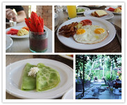 Pertiwi Resort & Spa的早餐不是自助餐,而是一个Set的,桌上放着menu, 热情的waiter过来给我们讲解如何order。早餐非常丰富,而且味道还不错!甜点浓浓的印尼风味^^