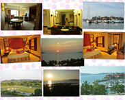 酒店位于海边,但几乎没有沙滩,海边停靠了不少游艇。酒店后面有一个高尔夫球场,很多韩国人喜爱来这里打球,为此,酒店的前台有专门韩国人接待员。拿了房卡,进入房间才发现我订的是一间海景套房,有一个大大的客厅。
