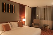 综合评价:廊曼机场的过渡酒店的不二选择,性价比很高 如何到达:坐天轨BTS到MOCHI(莫集)站,3号口出来,右手边楼梯下来就是一个公交站,坐A1到廊曼机场,上到3楼出发层坐一个专用电梯到2楼,走一个过街廊桥就是(《泰囧》在这个过街廊桥里取景的哦,很长的一个片段) 优点:赶廊曼机场的早班飞机灰常方便,走个过街长廊就是了;出门左转,大约走5分钟,就是7-11;房间比较中规中矩,床很舒服 缺点:住的天朝旅游团人民太多,很晚都会听到房间外面大声喧闹的声音 价格:人民币245/晚(不含早餐),赶早班飞机,吃不到早餐啊,当然就订不含早餐的啦 推荐指数:五颗星(如果要赶早班飞机的话)