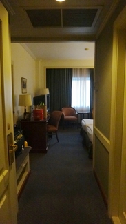淘宝上预订,含西式早餐,双人房二个1.2床,相连也可分开。430人民币一间/晚。入住的人很多,所以我们没有订到相邻的两间房,一东一西了,相互拿东西这些很不方便。 地理方便,就是BIG-C旁边,对面就是central world。前台有一个男士懂点中文,其他的前台小姐都懂几个中文词:押金,签名等,但听不懂提出的中文问题。 房间很大,有沐浴用品,没有牙刷,洗澡要站在浴缸里用顶上沐浴花洒洗澡,不能取。有热水壶没吹风机。不过,才进去的时候觉得被子很潮,盖在身上不舒服,开了空调吹了一下午才干躁了。 酒店四楼有游泳池,一半室内,一半室外,水很干净,有流水不停的加进去,有三个池子,一个小宝宝用,一个中童用,一个大人用。旁边有几张桌子椅子,还有几张躺椅。 西式早餐不错,只需要在餐厅门口报房间号就行,小孩不再另收费。退房后可以寄存行李,当天取免费。