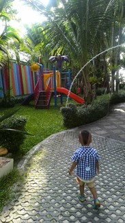 我们住的酒店在渣汶湖附近,CHABA SAMUI RESORT ,分湖翼和海翼,我们住在湖翼,比较清静到了酒店小黑送来一份水果,叫不上来这种水果的名字,求解,看着很像苹果,没有什么味道 。 chaba我们定的比较便宜,感觉性价比还是不错的,特别是自助早餐,样式很多,小黑也都比较热情,chaba还有个小小的儿童乐园,我家小子在那里玩的挺开心的,游泳池也有宝宝的,整体还可以。海翼的房间,每个房间都有一个阳台,比湖翼房间大。 需要提醒你的是房间里的保险柜,我家宝有一次玩保险箱,玩的开不开了,差点让我们多花钱开保险箱,还好隔了半个小时左右再开又好了,要不然还得付500B还是1000B开保险箱。要么别让孩子按,要么按的开不开了就等,别让酒店给你开,酒店当天开要付费,隔天不收费