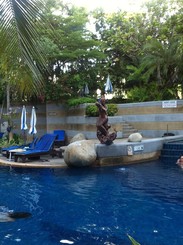 这是一家中规中矩的星级酒店,没有惊喜所言,就是楼下的泳池看着还不错,但是由于大姨妈到访,并没能下水感受~ 优点:地处位置极其好,就在巴东夜市上,酒店对面就是帖子中被大家各种推荐的NO.99、YOYO、NO.6大排档,离C&N马杀鸡、江西冷购物圈步行也就3、5分钟(10分钟以内肯定走到了)。 缺点:酒店楼下的一个小型酒吧街(其实就两三家酒吧)特别吵,闹到凌晨一两点,而且热场子的人感觉都是人妖和“鸭”,各种舞、各种扭,感觉还有看场子的人,所以超级恐怖,我跟老公去凑热闹看了眼,结果把我给吓到了,瞬间离开。。。