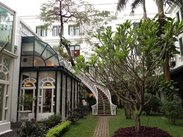 酒店由两个建筑组成,中间由有个美丽的花园连接。两个建筑代表两种完全不同的体验,一边是古典,带来厚重的历史感;另一边则现代,处处感受到舒适和惬意。中间连接的花园,里面还有餐厅和酒吧。服务生告诉我们每天晚上有爵士乐表演,可我们因为是晚上到达,有点累,很遗憾没有欣赏到。下次有机会再去越南,一定要补上。