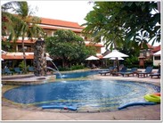 地点:Kuta海滩边(距离Hard Rock不远) 价格:$50/night 交通:☆☆☆☆☆ 环境:☆☆☆ 设施:☆☆☆ 服务:☆☆☆ 餐饮:☆☆☆☆ 总体评价: 三星 Bali Rani Hotel给我的感觉是麻雀虽小但五脏俱全。而且是比较经济实惠的酒店,抵达巴厘岛的第一晚在这里度过也不错。这里的早餐是我4家酒店中唯一是自助式的,味道不错。酒店的大床,软硬适中,满舒服的。