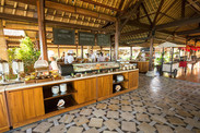 四季,我感觉她有些倔强。不仅从里到外翻新,还突破了固有的古朴巴厘风,新建了现代风格的餐厅和泳池,一改世人对四季的印象。对于宝格丽的冷艳,四季酒店更多了一份温暖和亲和的感觉,一进大堂就好像进入了当地人的家,有可爱的小姑娘为你带上欢迎花环。长达50米的无边泳池,应接着宁静的海面,吸引着无数游客,即使不住四季也会来这个餐厅就餐。四季在保留纯正的巴厘岛村庄设计理念,提供了独有的奢华体验和家庭温馨感,依着金巴兰湾而建,海边日落美景净收眼底。早晨,还可以预约免费的空中瑜伽课,在海边做个侠客的感觉;面对这片宁静的海,江湖中过往的悲伤,显得如沧海一粟,所以安静的做个瑜伽就好。在这样一个酒店里,早餐当然也是一道不可或缺的风景,印尼当地食物,中餐,西餐,甜点,水果,你能想到的种类基本都有,餐厅的位置就在海边的山崖上,放眼远眺就可以看见大海。
