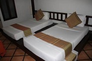 我们订的是普吉岛海景酒店(Phuket Island View Hotel),景点东南亚式风格,三层楼,木质结构为主,一前一后两个泳池,门口有酒吧、餐厅,过了马路就是海。我们也没有申请到蜜月房,所以进屋发现,是标准间,好在只是一个大台子上的两个厚床垫,于是我们直接推在一起,就成了个Kingsize的双人床了。
