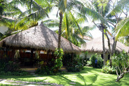 最后终于找到这家传说中的CHAM VILLAS,从我住的海景酒店再往西开3KM,到前台一问价格,150美金,我果断被吓尿,想着赶紧闪人,但妹纸们掏出护照价都不讲就登记入住,跟着我这个屌丝穷游了这么多天,今天终于忍不住露出了白富美的本色。 渡假村的房间都是这样的独栋别墅,最外面靠海的最贵(就是妹纸住的那种),拥有自己的私人海滩。出房间走5米就是酒店的私人白沙滩