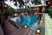 肉桂乌布达酒店包含早饭 RMB 1925 五星别墅 。 丛林中的完美别墅酒店,用司机的话说,非常的安静,价格在国内只能住五星的标间或者商务间,同期三亚的别墅一晚要2万人民币,够2人巴厘岛一个来回了,同期三亚的标间居然也要2000-3000以上,所以肉桂的性价比可见一斑,还有的就是景色很错,入住绝对完美体验。除了SPA有点贵外,食物,服务都不错。赠送了蛋糕,味道不错,惟有的遗憾是行李送的慢了,还有我们装行李时不小心把睡衣拿错了,打电话给酒店让他们来新酒店取,结果他们说送给我们了,我们怎么好意思还是留在新酒店让他们来取! 因为是下午2点可以入住,所以我们安排了先去博物馆,这样3点到正好。司机开车在乌布的小镇里穿梭,很快到了郊外,一片树林一条小路,道路狭窄,好像村落,在进入一个小巷子后终于停在了一个小院子门口,原来已经到了,难道这就是书上重点推荐,BOOKING评分很高的 肉桂酒店吗,后来的正明,别看门面,里面绝对是国内五星都达不到的水平,绝对的超值享受。 感受到了书上的所谓微笑服务,34个人围着你,帮助卸行李、办理入住,然后check in,一个微笑的管家代领你走入大堂后的花园、这是我们的中央花园、穿过小巷、满是绿色植物,我们已经迫不及待的想进入酒店,感受泳池,基本没心思停他介绍,包括里面的一肉桂树,也就是酒店名字的来源,首先带我们参观了泳池餐厅,就在餐厅大院的附近,ULIN的别墅名牌处一停下,我们知道就是我们的酒店别墅了,进入后,带我们参观了各处设施,然后是一堆介绍,说实话,我真很希望他快点闪人,立即进入泳池享受,随后是一个小伙子,拿来湿毛巾和欢迎果汁,管家给介绍酒店食物时间,拿出餐单让我们选择早饭的种类,首先是饮料茶水、面包、主食、最后十饮料。呵呵不管他,随便选。没想到,管家完了后又开始问是否需要SPA,60美元1小时,阿勇河边SPA,再送半小时,也就是60美元1个半小时,如果你只要1个小时,通行人员也可以享受赠送的半小时。 最后终于介绍完毕,20多分钟都过去了,行李还没到,直接电话前台,送到后,1美元消费甩出,呵呵,感觉不错,日后给消费成为了习惯。 终于行李到来,我门用传统的当们杆子,关上大门,享受自己别墅空空间,大院子,餐厅带厨房,休闲躺椅,dvd户外音响,放上带来的音乐《故宫的回忆》,不大不小的泳池,带浴缸和户外淋雨的卫生间,蛮大的,蚊帐大床,电视minibar,奢华到位,又有当地特色。关键是整个别墅四周全是苍天大树,据对的高大,自己看吧,院子里还有金鱼池。 在泳池里享受半个下午,音乐,雨林,水温正好,一个字 爽!早饭和很丰盛,很不错。