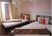 grassland是个正规的二星酒店,有电梯有游泳池,不是家庭旅馆。问问价格15美金含早餐,还可以免费提供自行车。看看房间是在不临街的一侧,窗户外面正好是个什么屋顶,脏兮兮的不喜欢,而且本身对窗外有个平台之类的有点恐惧感,生怕有什么东西会爬进来。没想到给我的房间这次临街,还有个阳台,阳台上有桌椅可以看街景。阳台之间是镂空的木格,正好能把洗衣绳拴上晾衣服,意外惊喜啊!