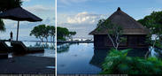 整个度假村也是临海而建,别墅分布在弯曲的山崖小路上,总体感觉空间略显拥挤,房间的装饰都采用黑色的家具,和宝格丽整体低调奢华的风格遥相呼应。酒店的SPA中心,古色古香的设计。宝格丽最惊艳的地方在于无边泳池和通往悬崖脚下海边餐厅的垂直电梯,当然酒店的设计感也是一流。用了天然的黑色火山岩作为主要石材,尽显厚重感和奢华,酒店整体色彩简洁,只有黑,白,棕三色,园林设计却繁花似锦,而且整体规划很赞,每间别墅的私密性都很高。悬崖海景也是蔚为壮观。 但是除了第一排的悬崖海景别墅有良好而宽阔的海景之外,其他的villa都挨得较紧,比较密集。从见面的岩石灰大堂就透露着内敛而雍容的外貌,用的床单,卫浴用品,茶品都是宝格丽精挑细选,每次入住都会送上不同的小礼物。蜜月布置上铺满鲜花的浴缸和别致折叠过的床单。不过公共活动区域的环境就不太理想了,因为宝格丽酒店太出名,大量国内游客涌进吃下午茶,拍照,餐厅大堂变得吵闹不堪,顿时有种到景点的感觉