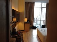 酒店就在沙巴大学附近,大堂感觉还不错。拿房卡入内,环境还不错。有落地玻璃,可惜对面房太高,看不到海。电视墙挺有小资感觉的,电视节目有两个台都是滚动播放TVB电视剧,都是粤语原声的,我钟意!一个台有中文字幕,一个台没有字幕,不过不紧要,我听得懂。