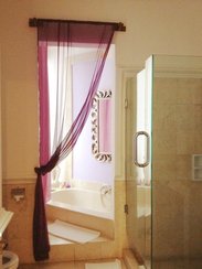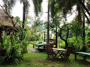 我们在Ubud只有两天的住宿,对酒店的选择也没有太用心,但是结果让我们惊呆!在Ubud如果你的预算充裕住私密的Villa是最好的选择,但如果囊中羞涩住民宿也是不错选择.我们这次则来了个不走寻常路,住了一家从来没有人在旅游论坛上提到过的一家传统酒店Mansion Resort. 我们开门进去的一刹那差点惊呆,我们被升级到Villa Regidence.比原来的房型足足大了一倍不说,紫色的布艺让我欣喜若狂,我可是个薰衣草控哦!!! 这家酒店虽然说只有八年,但是维护的不算太好,看起来有些陈旧但是很整洁.酒店的装饰很有当地的特色,还有和乌布皇宫和很多景点摆放的那种布伞,当地人看了肯定会说很傻.不过白色的窗幔和紫色的窗纱可以掩盖这一切的,任何不足都无所谓了:)