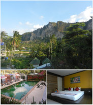 酒店房间还是挺大的,窗户正对着山景,泳池比较小而且只有在下午6点前才有开放。从酒店走到奥南海滩如果步行的话需要20分钟左右,为了方便我们还是向酒店租了摩托车,酒店的摩托车可以按半天来计费。