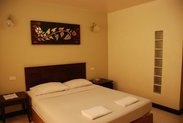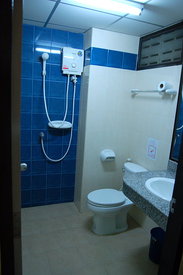 我们在曼谷住在了考山路附近的RAMBUTTRI,在论坛里看见有童鞋推荐就定了这家。整体还行,房间挺小,但也算是五脏俱全吧,还有保险箱,电视是象学校餐厅一样吊起来的,没有烧水壶,每天提供两瓶纯净水。床很小,1.5米吧,晚上我们三个挤的呀~~~ 我们当时定的价格是180左右吧,么有早餐。看见有老外WALK IN ,问价格的时候偷听了一下,才650B啊,不是旺季的话可以选择WALK IN呀,便宜不少呢。 这家酒店的周边算是很便利的了,离考山路步行2分钟,酒店门口的街道上有两家7-11,好几家兑换点,数家马杀鸡,餐厅酒吧也有好几家,小摊无数。