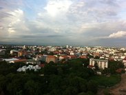 我们是找的旅行社统一解决机票和住宿,3650元/人,重庆直飞,4晚FURAMA,按照agoda上FURAMA的报价(300元/晚左右),机票费用应该是在2400元来回,不算便宜,但集体出行(一共50人),胜在方便。 FURAMA在古城西北面,乘坐双条车到古城不到10分钟,距离宁曼路和CENTER WORLD、千人火锅都满近的,酒店环境还好,但稍显古旧,我住过吉隆坡的FURAMA,比清迈的要好一些。清迈有很多便宜又有调性的酒店,自己出行的话,不推荐FURAMA。 FURAMA在清迈的云云众酒店中,只能算上一般,但能俯瞰大半个清迈城和有清澈游泳池的屋顶还是带给了我们非常快乐的时光。我是在抵达清迈的第二天下午,趁着去夜间动物园之前的空隙上了酒店楼顶,看到绿绿的远山围绕着这个城市,远处还闪着金色的阳光,在那一刻爱上了清迈。 至于泳池么,清早起床游一圈再去吃早餐,会让一天的开始就很完美~FURAMA在一条小巷中,出巷口对街就有711,711门口有一片夜排档,在清迈的几天中,我们同行的同事每天都是以逛711吃夜排档结束的。