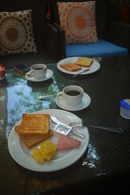 当初之所以选了这间饭店,主要是因为他离BTS站很近,加上周遭又有很多东西可以吃,所以我们选择了这家很有法式风情的曼谷精品饭店。对于住习惯大饭店然后这次想要尝试精品饭店的人来说,在找这间饭店的同时可能会让你有点失望,因为饭店并不是位在大马路旁,而是位在巷子里的巷子里,从外面进来最多只能看得到小小的招牌,请出租车载你的话,司机都相当有可能会不知道在哪边或者是找不到路。 这间饭店算是比较迷你的法式风情酒店,饭店现在分成两栋,一栋是LOBBY,另一栋是跟餐厅一起的,运气好的话可以住到有小阳台的房间唷(这也是我们当初之所以选这间的另一个原因)。整栋楼只有三层,电梯是比较小型的。坐上电梯到达住宿的楼层,电梯打开后饭店给人很温馨的感觉。打开房门后发现房间布置相当精致,床头的墙壁上也是布置的很漂亮,放眼望去真的觉得相当舒服。浴室也是走一个colorful路线户外有一个游泳池,在这边晒晒太阳应该也是很不错的。 吃早餐的地方说真的,曼谷很热,所以我想除了欧美人士之外,应该鲜少会有人想坐在户外边流汗边吃东西。早餐部分还算是精致与丰盛,早上可以先在这边吃一点填肚子,毕竟外面还有更多东西在等你去享用。饭店提供的嘟嘟车,可以载你到附近的地方或者是BTS站,阿记得要给司机小费嘿,这是一个小费的王国。 其实这间饭店的性价比还算很高,不是那种很高档的,但也不是很烂的,装潢很漂亮,服务相当好,不过床单有破洞跟我朋友的房间浴室灯不亮这点让我觉得有一点扯,但是依他的价钱跟其它的优点来说,这些小缺点还算是可以容忍的,OK啦,我还是要给予这间饭店一个好的评价,推荐推荐。